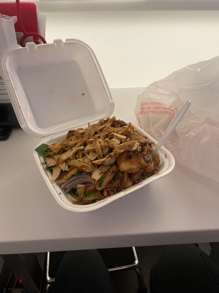 This entree features your choice of our tender chicken or beef shawarma plated next to your choice of steam-cooked rice or golden fries.